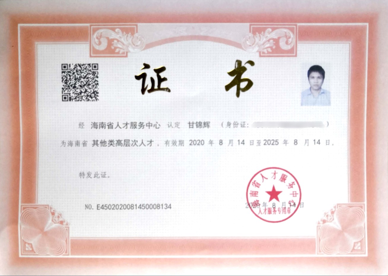 恭喜我司技術(shù)總監(jiān)甘錦輝同志通過海南省高層次人才評定,可以享受海南相關(guān)人才待遇。甘錦輝主要業(yè)績?nèi)缦拢?/span>