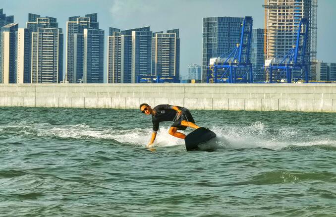 2022海南電動(dòng)沖浪板體驗(yàn)營(yíng)面向廣大親水運(yùn)動(dòng)愛(ài)好者免費(fèi)開(kāi)展,活動(dòng)內(nèi)容包括電動(dòng)沖浪板培訓(xùn)、電動(dòng)沖浪板環(huán)圈沖浪體驗(yàn)、電動(dòng)沖浪板水上盲盒奪寶等?;顒?dòng)吸引了來(lái)自全國(guó)各地的親水運(yùn)動(dòng)愛(ài)好者近百人參加,大家都穿戴好下水裝備,準(zhǔn)備一試身手。來(lái)自外地的王先生玩過(guò)傳統(tǒng)沖浪板,這次來(lái)參加電動(dòng)沖浪板體驗(yàn)營(yíng),就是想感受一下電動(dòng)沖浪板的特別之處,感受電動(dòng)沖浪板的魅力。曾經(jīng)有過(guò)一次電動(dòng)沖浪板體驗(yàn)的楊女士,這次也是慕名前來(lái)參加,曾經(jīng)只能趴在電動(dòng)沖浪板上玩,此次體驗(yàn)的目標(biāo)非常明確,就是站在電動(dòng)沖浪板上,體驗(yàn)一回真正的乘風(fēng)破浪。來(lái)自??诘牟芟壬且幻线\(yùn)動(dòng)愛(ài)好者,對(duì)于電動(dòng)沖浪板而言,他表示上手簡(jiǎn)單,教練教一次就可以掌握要領(lǐng),在無(wú)風(fēng)無(wú)浪的情況下,也可以玩得很開(kāi)心。